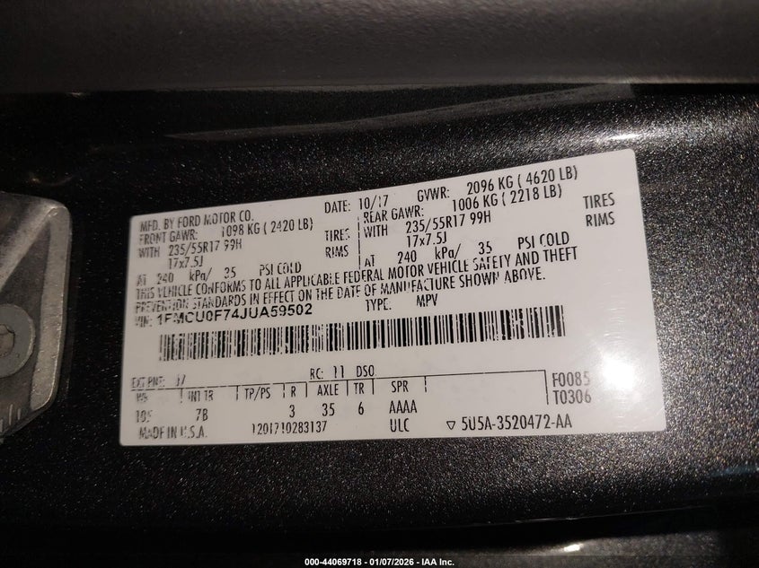 • 1FMCU0F74JUA59502