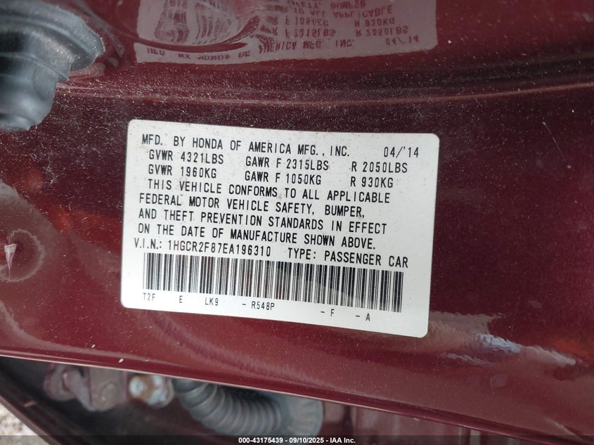 • 1HGCR2F87EA196310