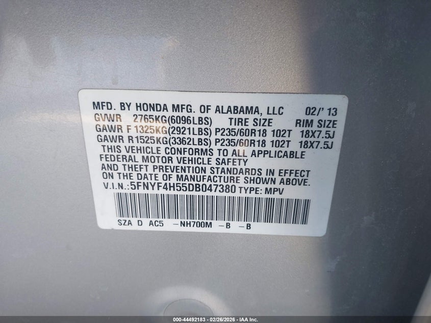 • 5FNYF4H55DB047380