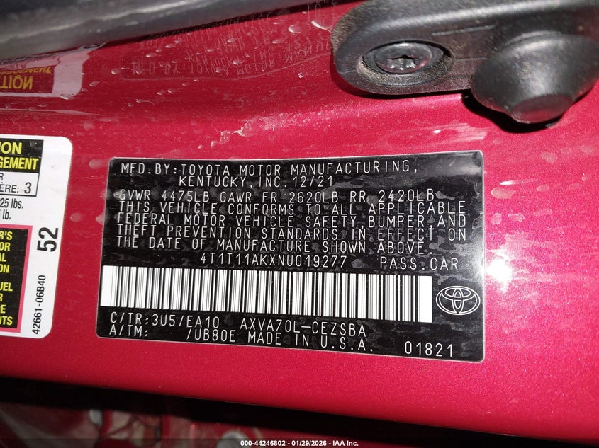 • 4T1T11AKXNU019277