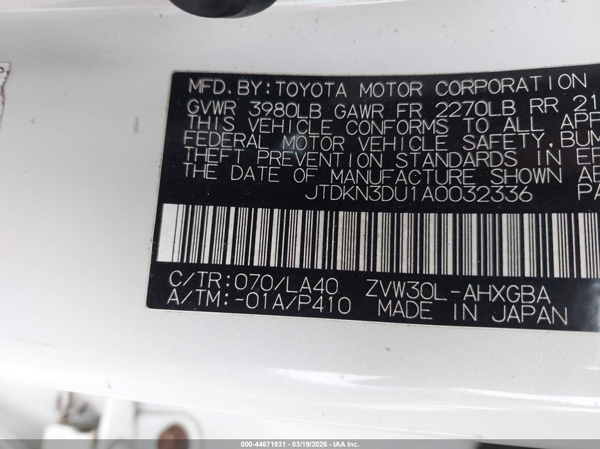 • JTDKN3DU1A0032336