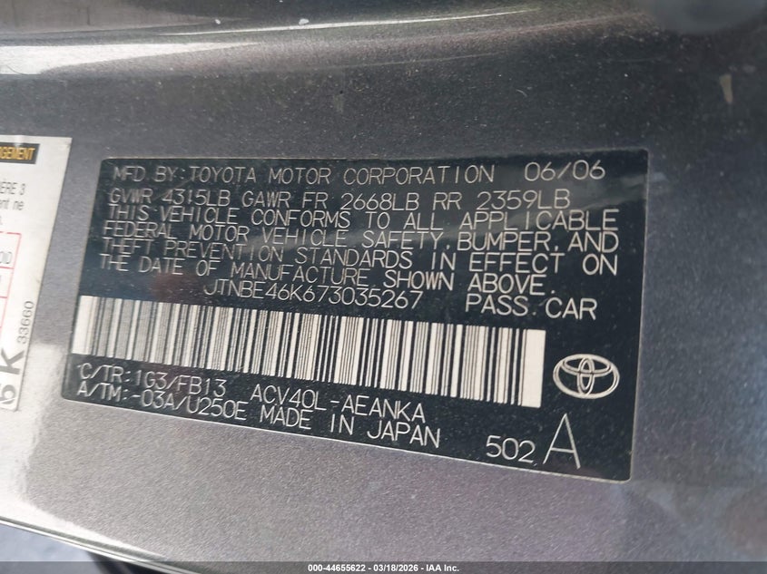 • JTNBE46K673035267