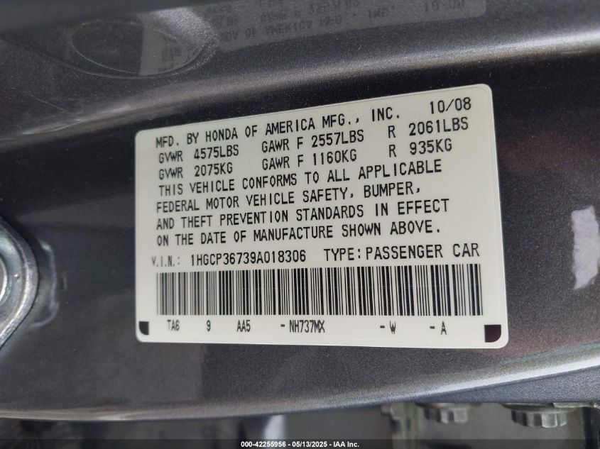 • 1HGCP36739A018306
