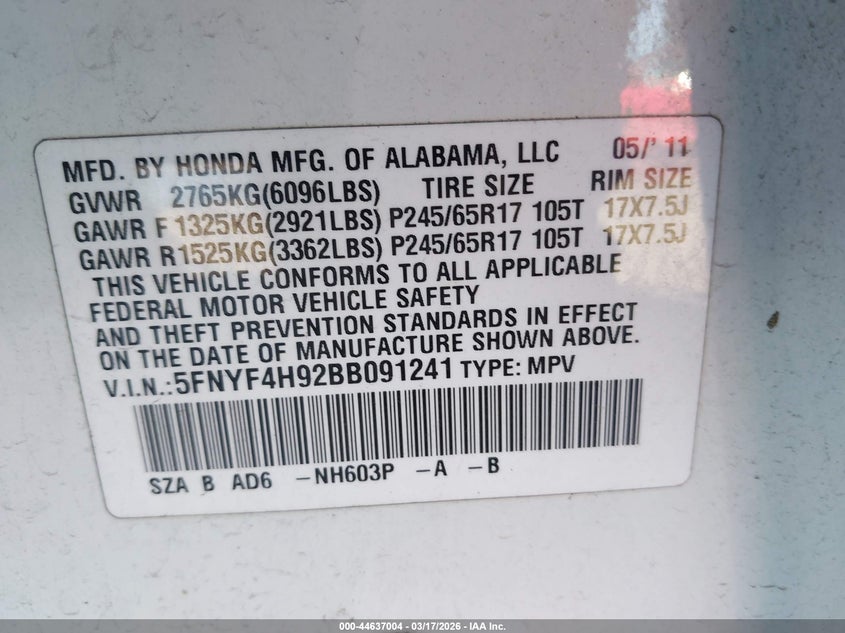 • 5FNYF4H92BB091241