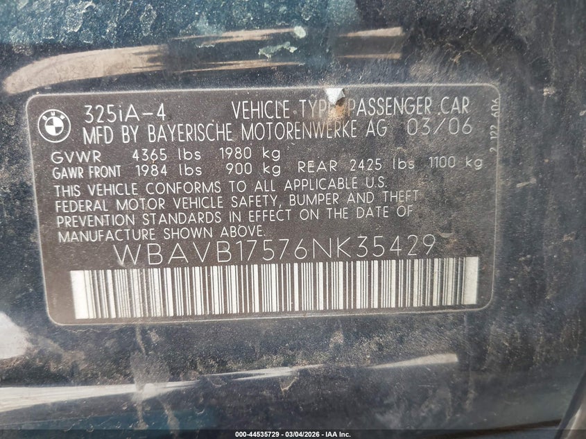 • WBAVB17576NK35429