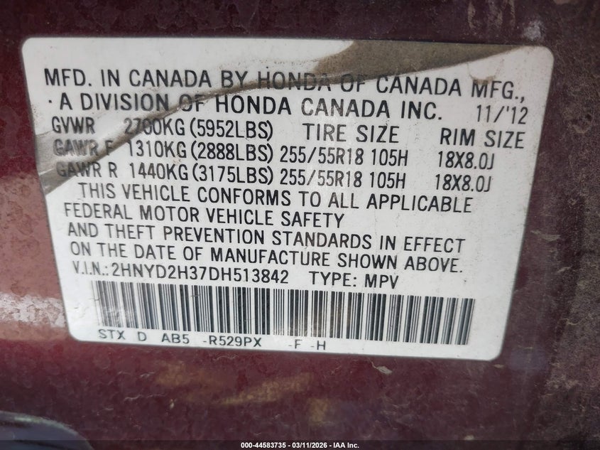 • 2HNYD2H37DH513842