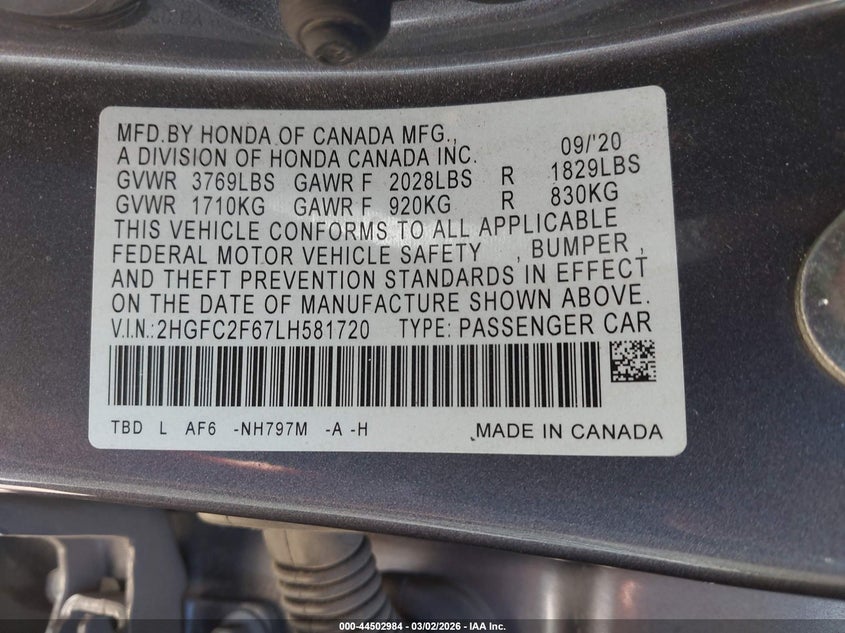 • 2HGFC2F67LH581720