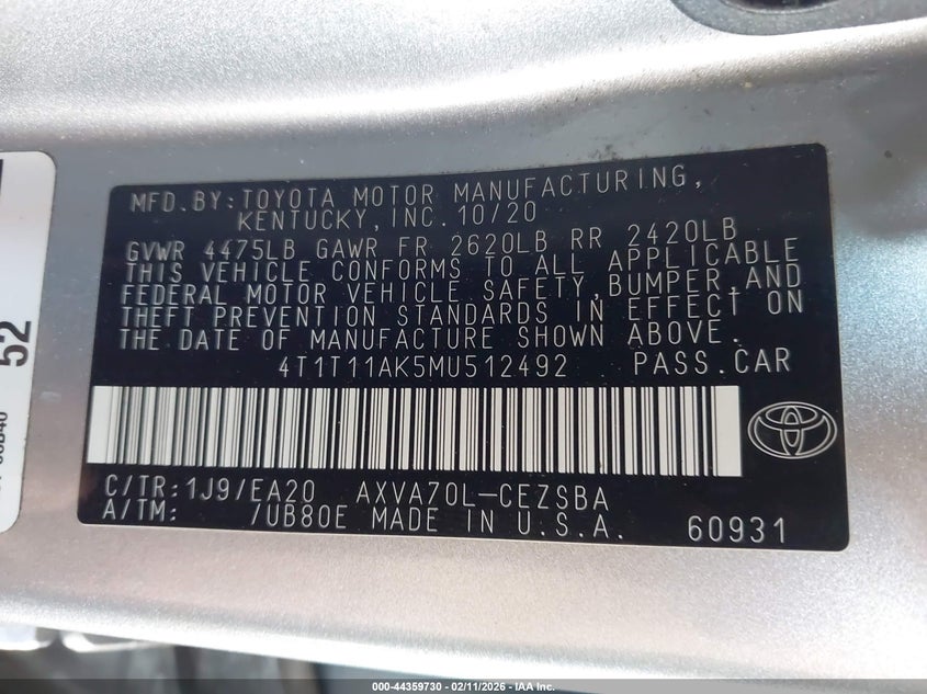 • 4T1T11AK5MU512492