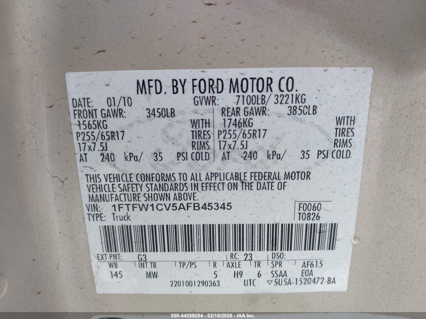 • 1FTFW1CV5AFB45345