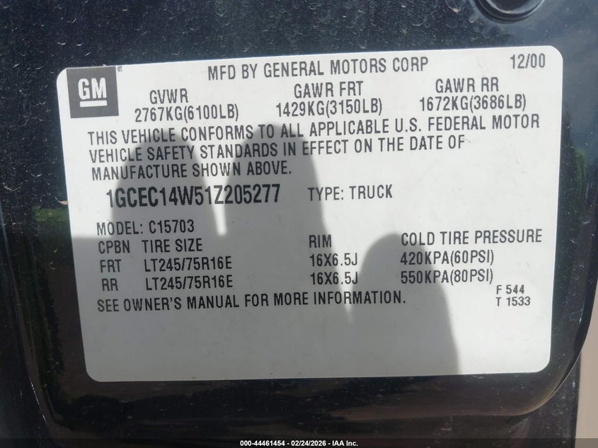 • 1GCEC14W51Z205277