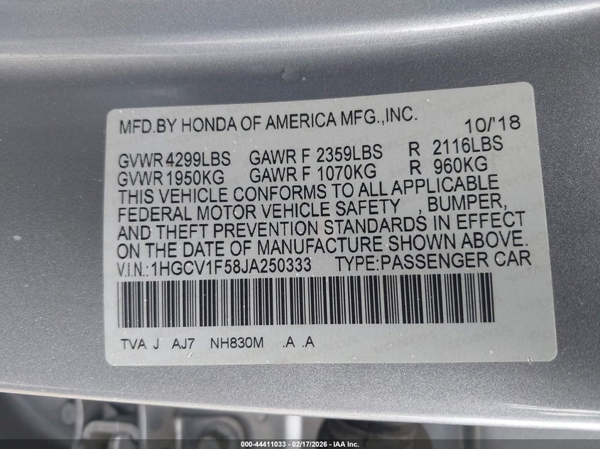 • 1HGCV1F58JA250333