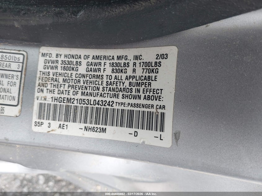 • 1HGEM21053L043242