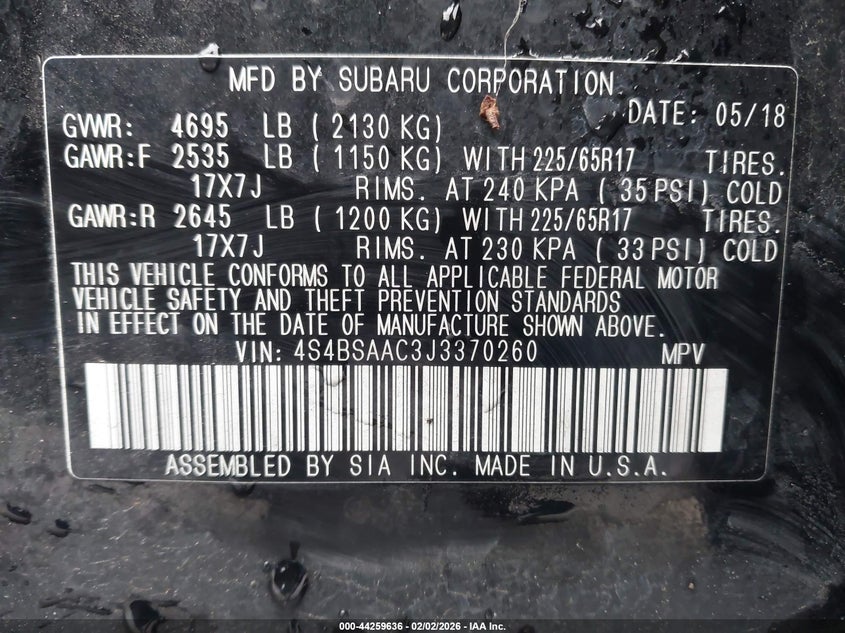 • 4S4BSAAC3J3370260