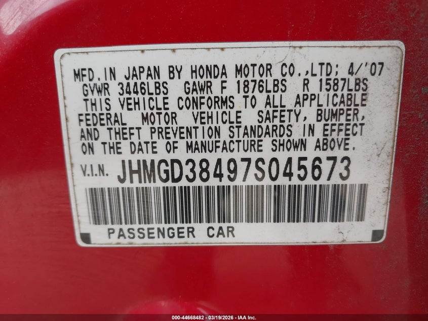 • JHMGD38497S045673