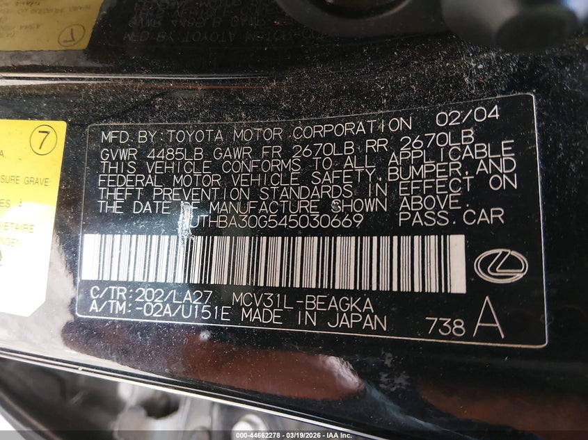 • JTHBA30G545030669