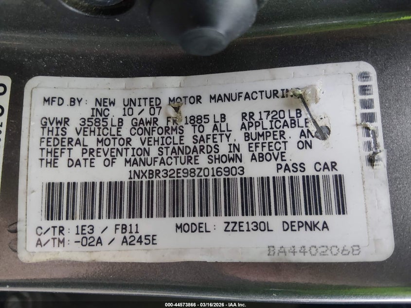 • 1NXBR32E98Z016903