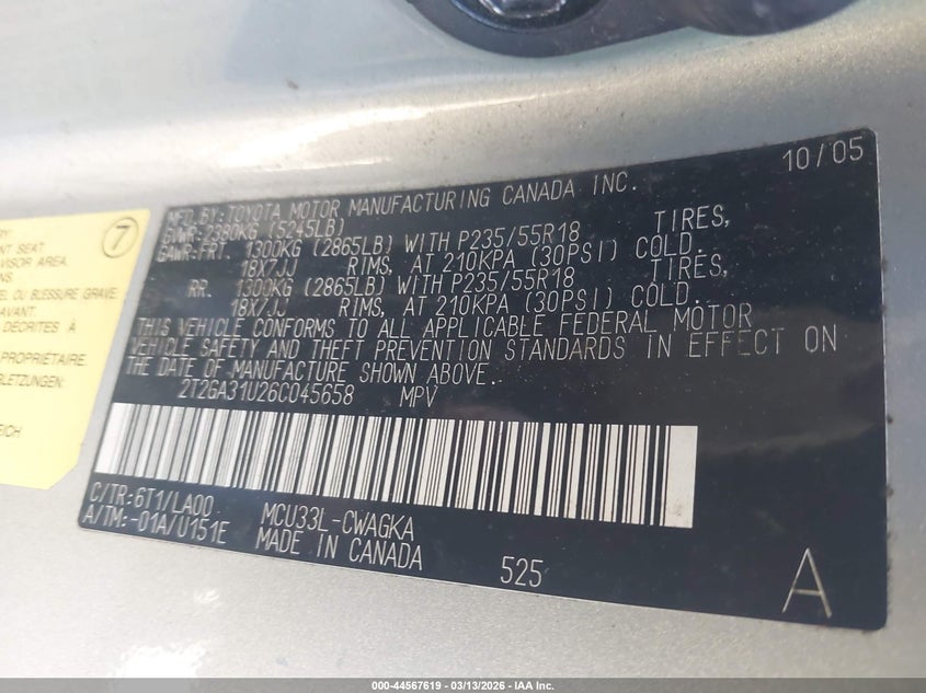 • 2T2GA31U26C045658