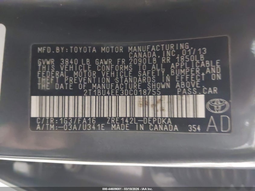 • 2T1BU4EE3DC018755