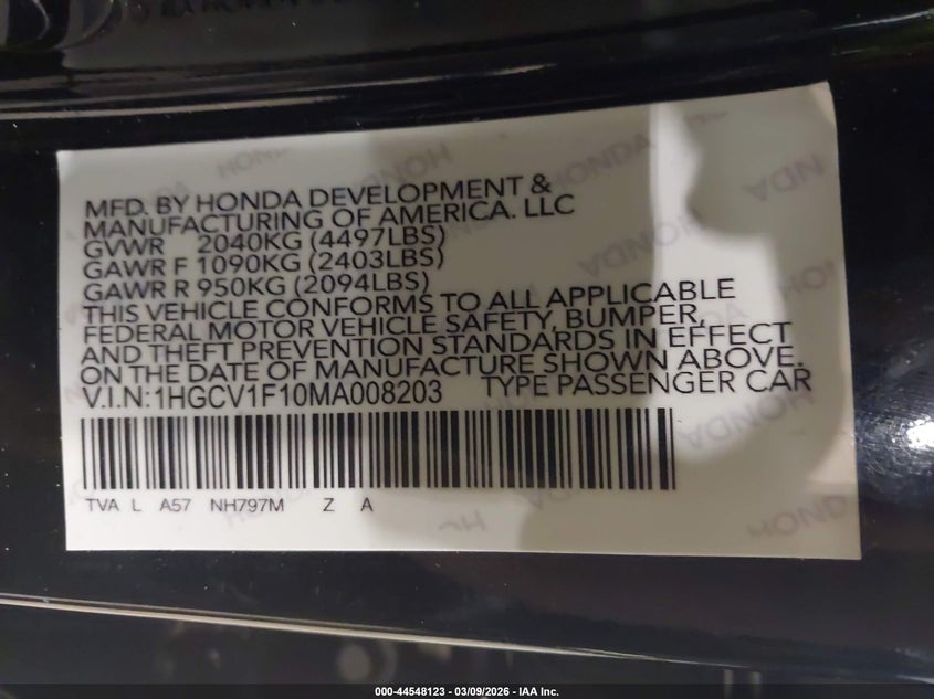 • 1HGCV1F10MA008203