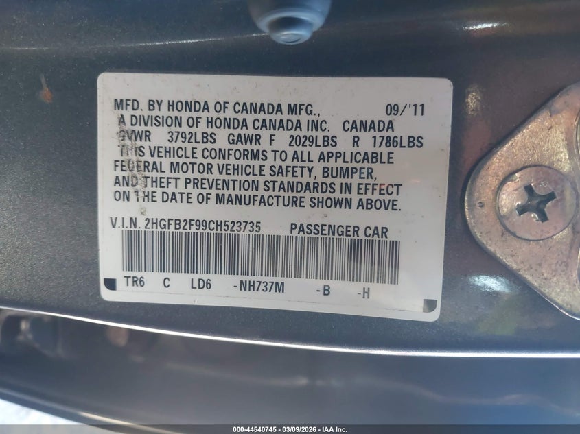 • 2HGFB2F99CH523735