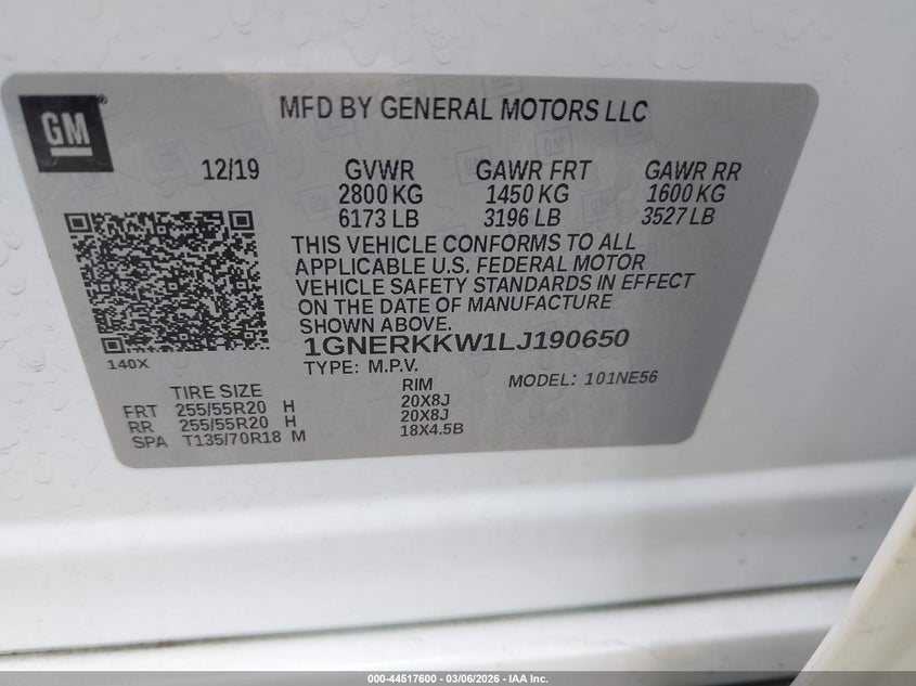 • 1GNERKKW1LJ190650