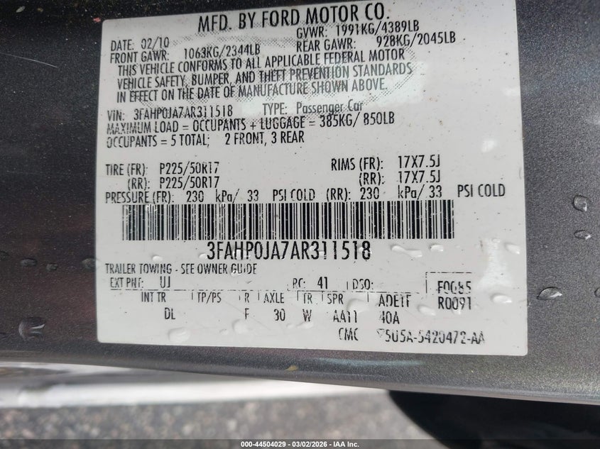 • 3FAHP0JA7AR311518