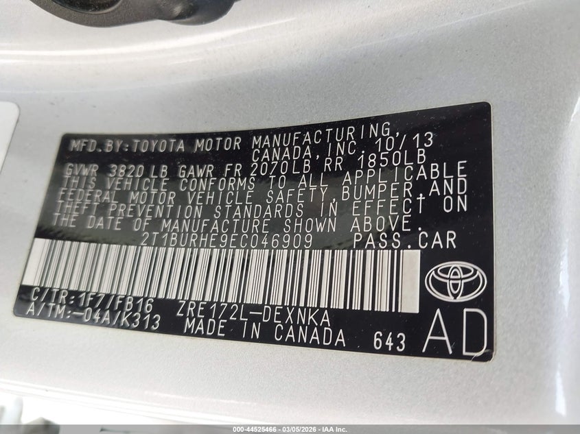 • 2T1BURHE9EC046909