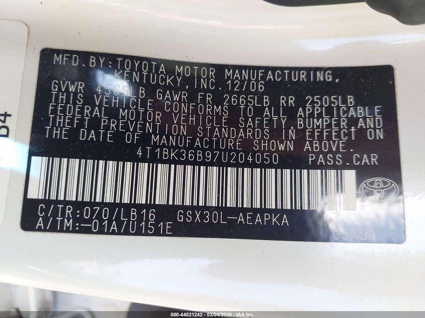 • 4T1BK36B97U204050
