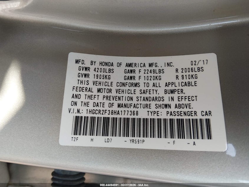 • 1HGCR2F38HA177368