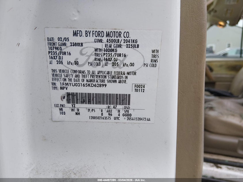 • 1FMYU03165KD62899