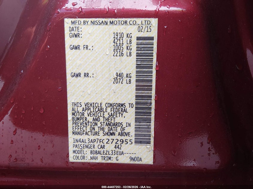 2015 NISSAN ALTIMA 2.5/2.5 S/2.5 SL/2.5 SV for Sale in Lexington, SC