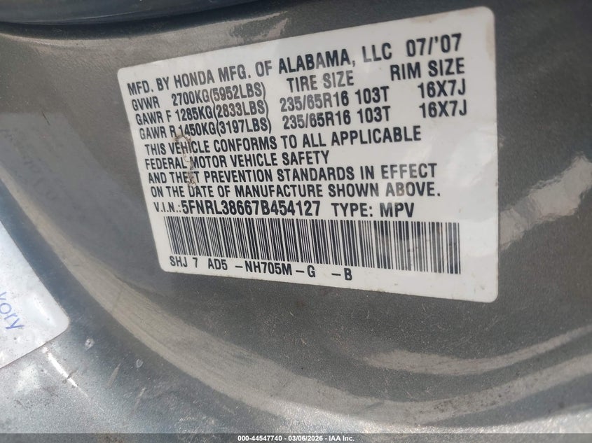 • 5FNRL38667B454127