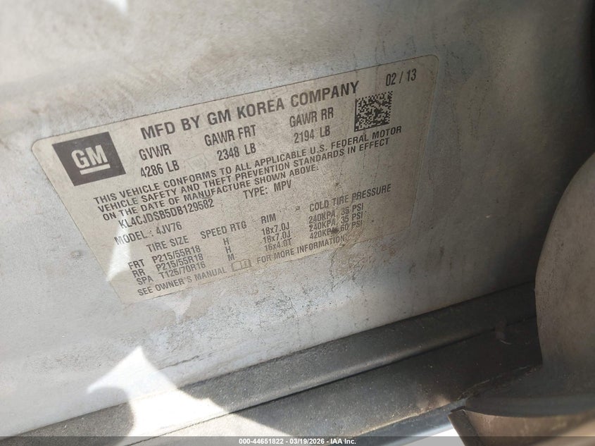 • KL4CJDSB5DB129582