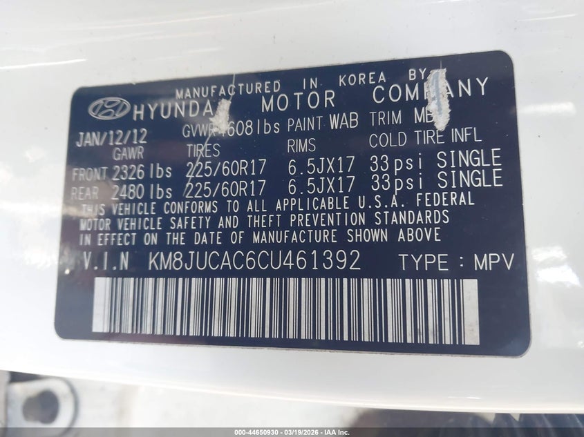 • KM8JUCAC6CU461392