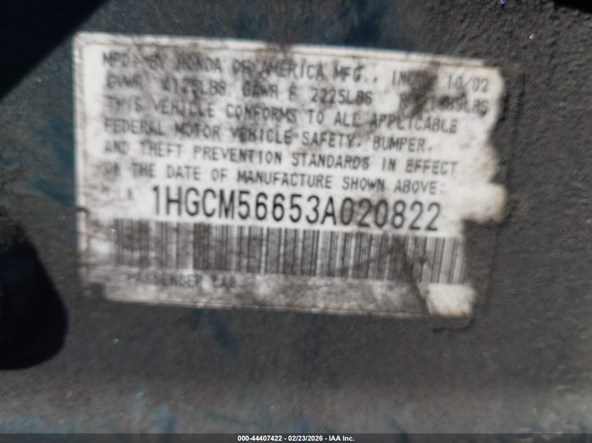 • 1HGCM56653A020822