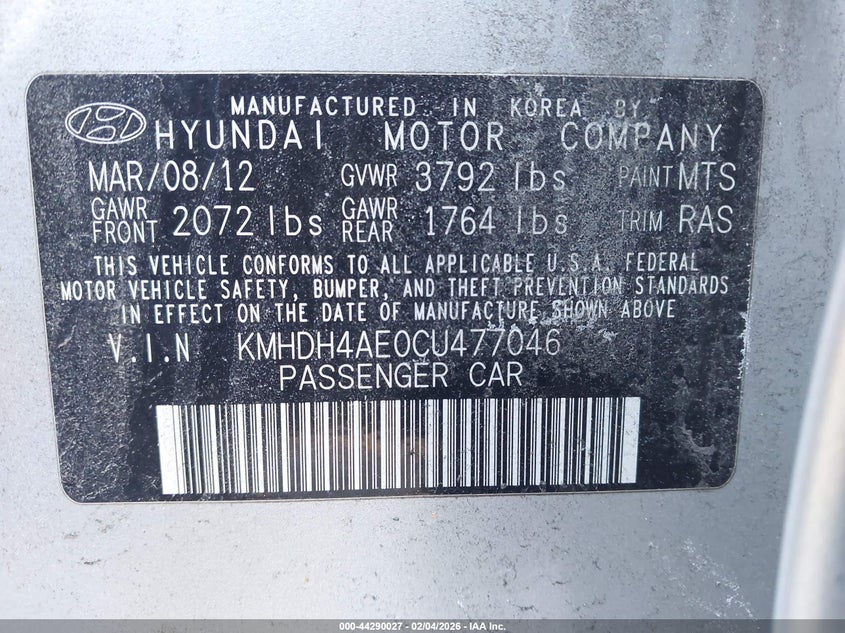 • KMHDH4AE0CU477046