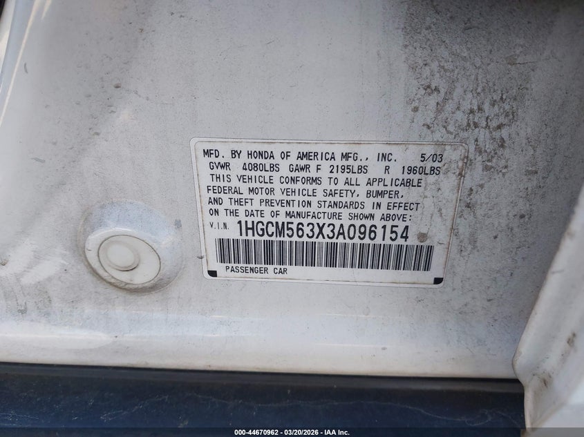 • 1HGCM563X3A096154