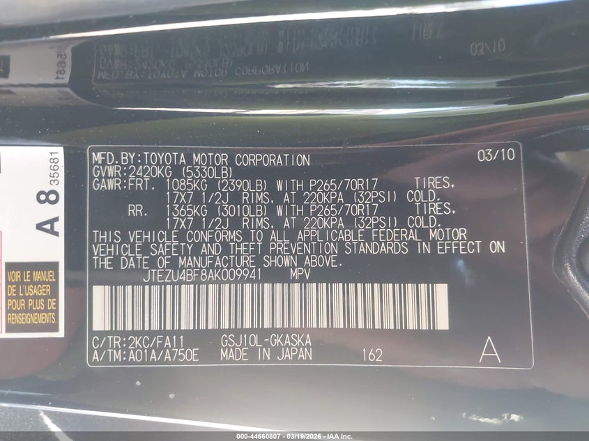 • JTEZU4BF8AK009941