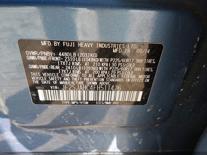 • JF2SJAHC4FH511426