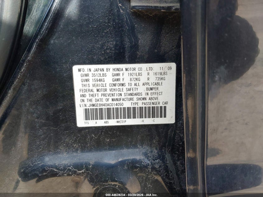 • JHMGE8H40AC014050