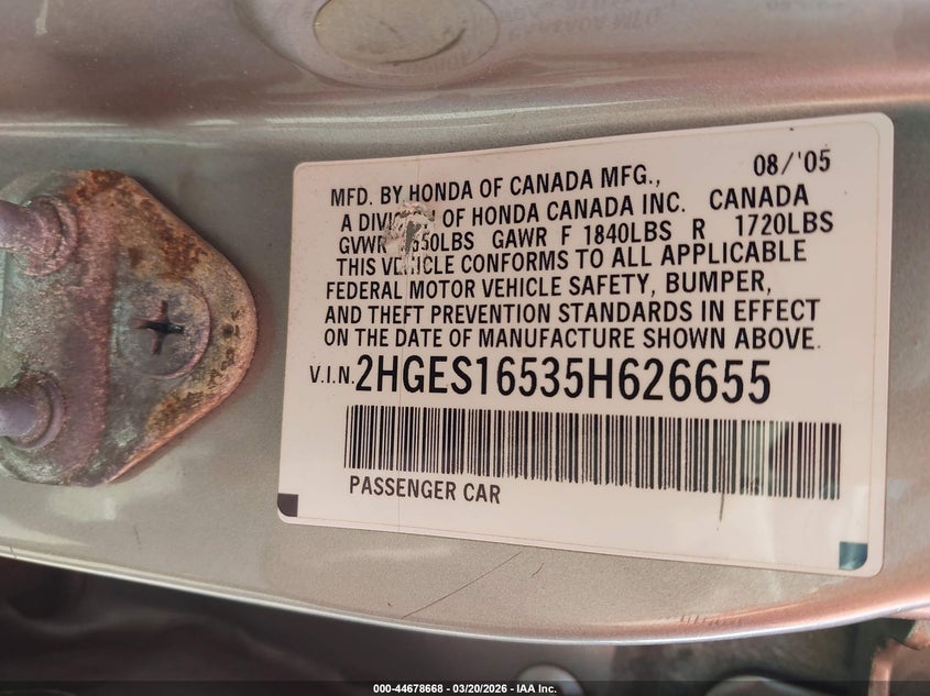2005 HONDA CIVIC LX for Sale in Brandywine, MD