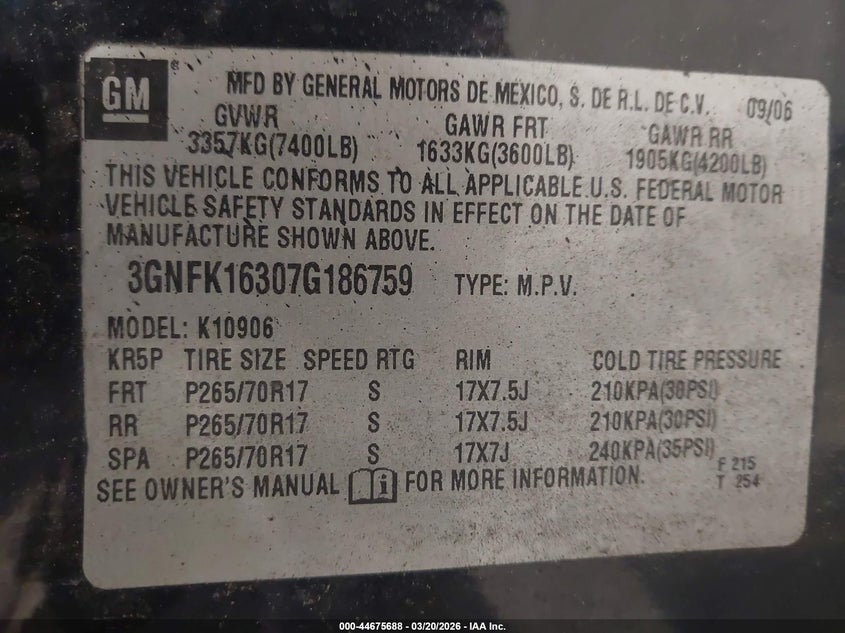 • 3GNFK16307G186759