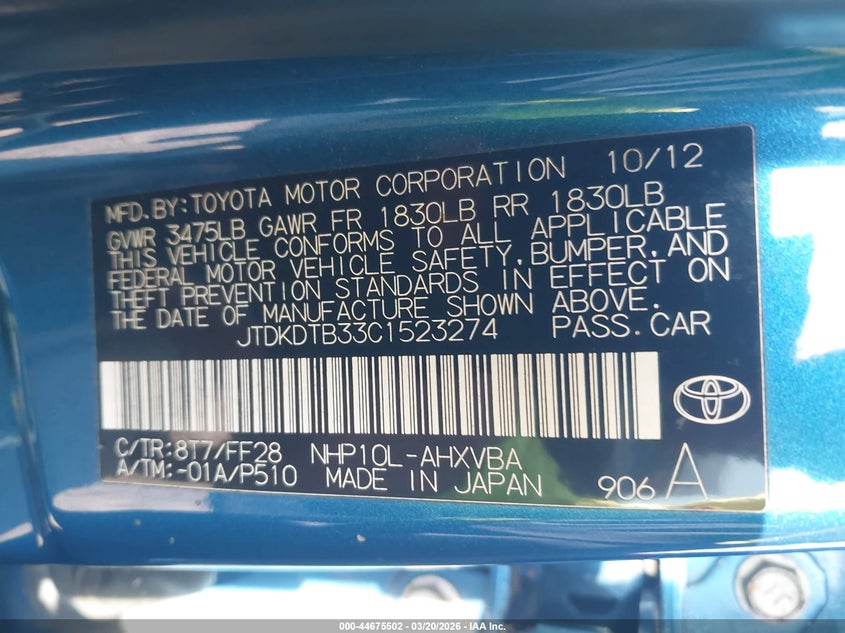• JTDKDTB33C1523274