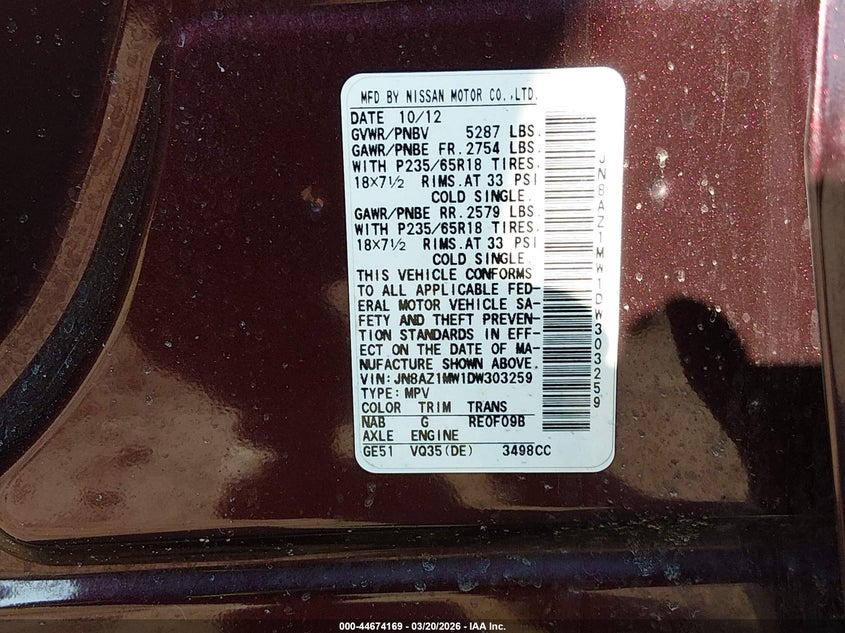 • JN8AZ1MW1DW303259