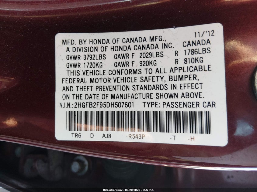 • 2HGFB2F95DH507601