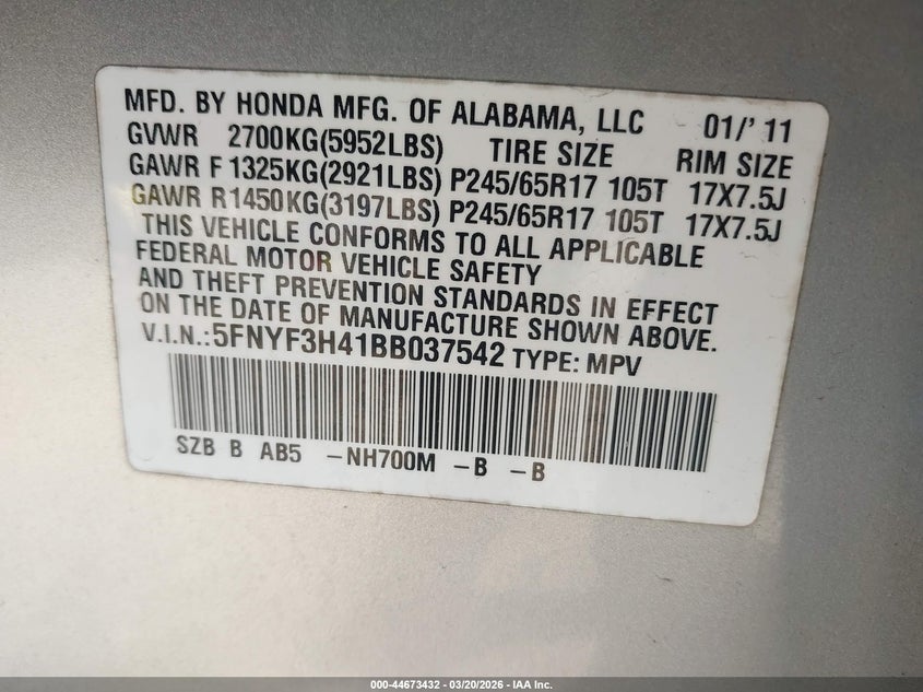 • 5FNYF3H41BB037542
