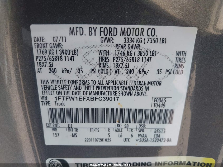 • 1FTFW1EFXBFC39017