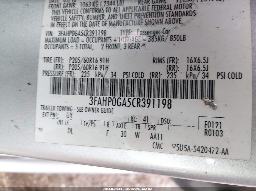 • 3FAHP0GA5CR391198