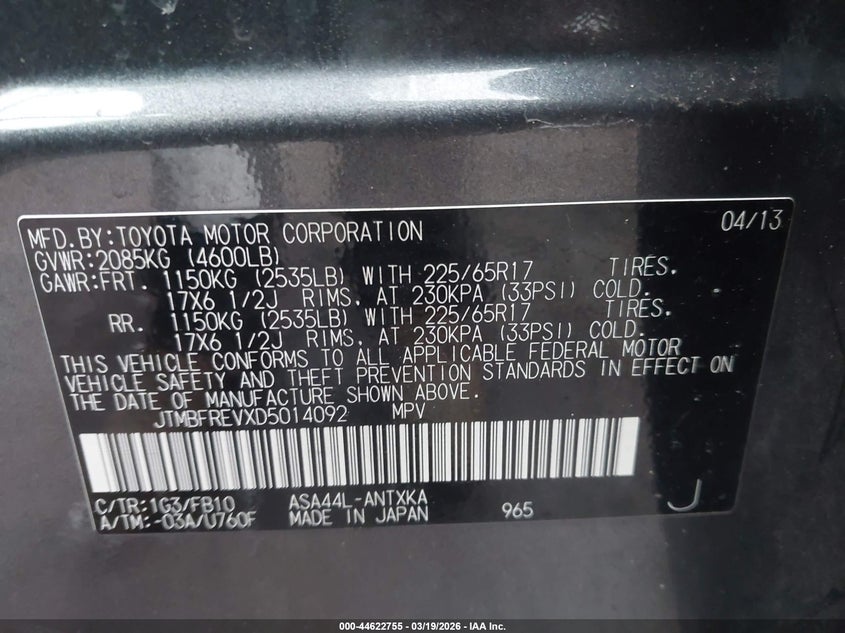 • JTMBFREVXD5014092