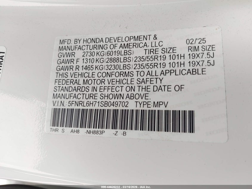 • 5FNRL6H71SB049702